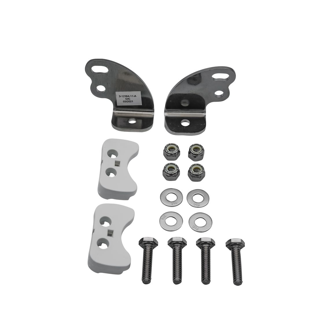 A stainless steel hardware kit designed to be used with Rigid's White RDS-SR Series lights. The kit includes brackets, bushings, and mounting hardware.